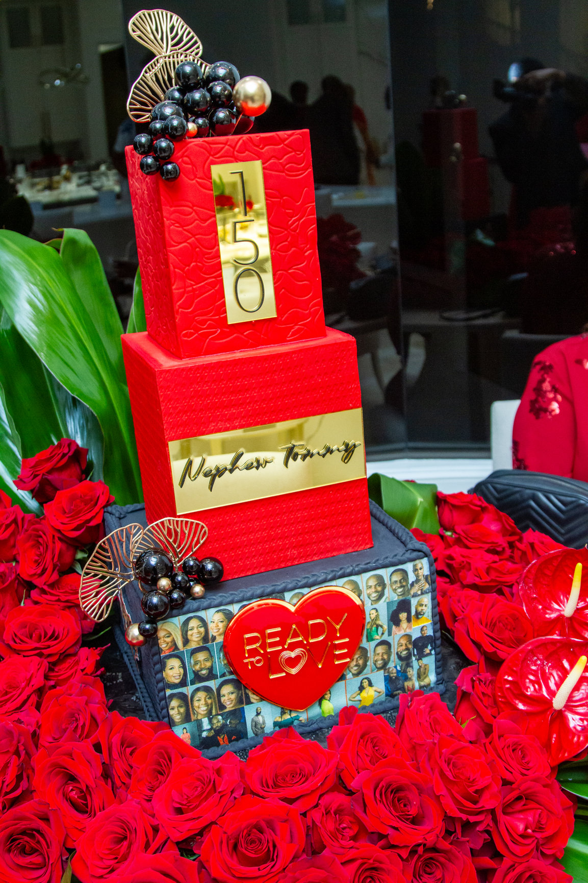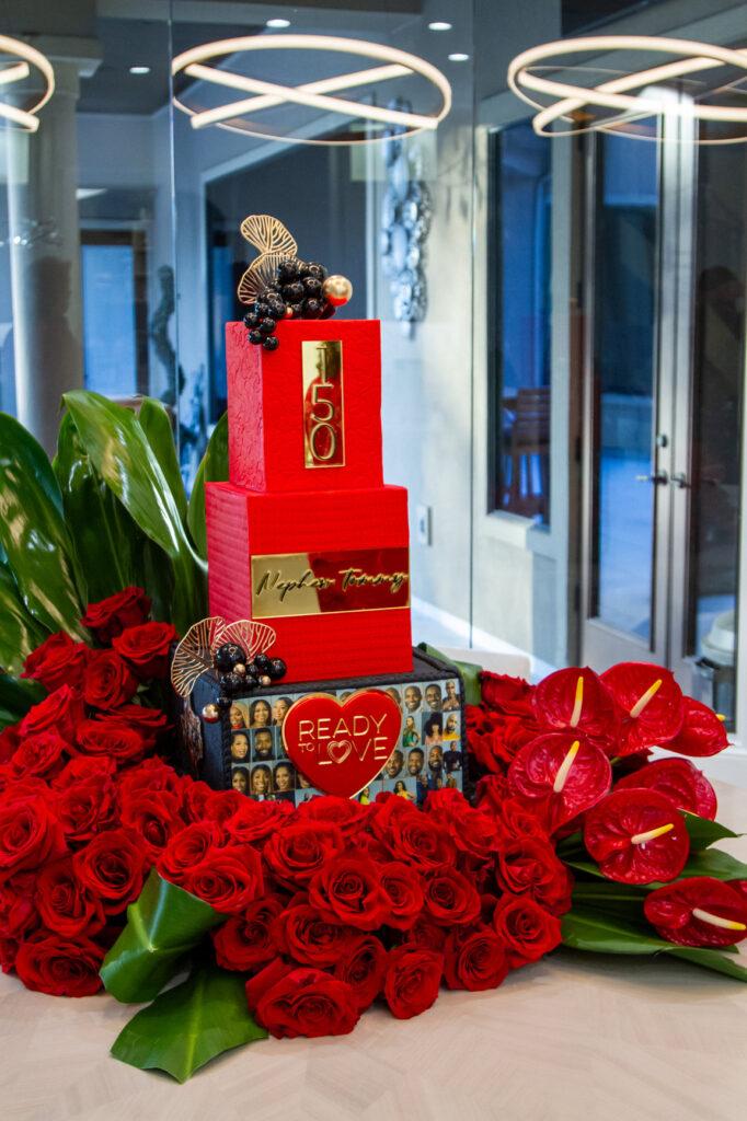 Last but not least a towering cake with photos of singles from different seasons and decadent shades of red, black and gold. The cake was made by one of Texas’ top artisanal cake designers, Cakes By Tammy Allen.